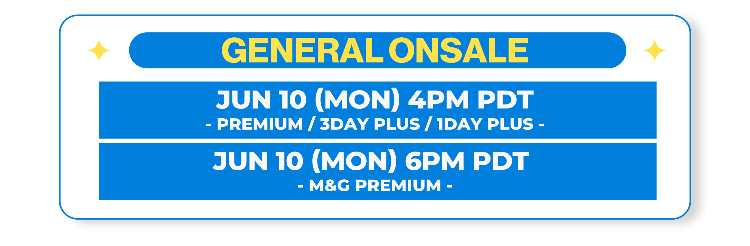 * ACCESS TO FESTIVAL GROUND / KCON STAGE / M&G STAGE IS INCLUDED IN ALL TICKET PACKAGES